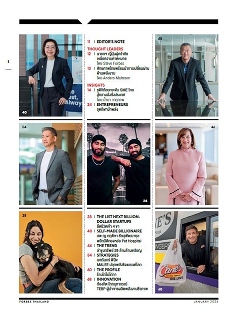 ร่วมอ่านบทความอื่นๆ ที่น่าสนใจรวมถึงเรื่องราวธุรกิจอันหลากหลายเพื่อสร้าง “แรงบันดาลใจของผู้ใฝ่ความสำเร็จ” จาก Forbes Thailand ฉบับเดือนมกราคม 2569 จำหน่ายแล้วที่ร้านหนังสือชั้นนำ และอ่านในรูปแบบ e-magazine ได้ที่ Meb และ Pinto