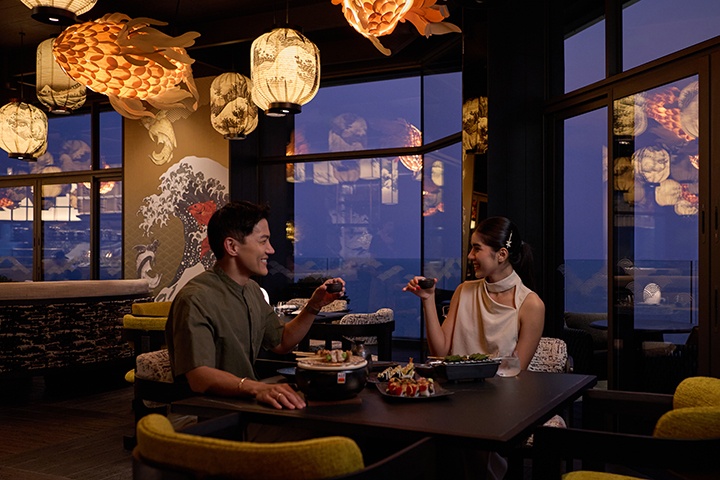 หัวใจสำคัญของ Torien Rooftop and Bar คือการนำเสนอรสชาติที่สะท้อนถึงแก่นแท้ของวัตถุดิบคุณภาพยอดเยี่ยม ทุกจานถูกรังสรรค์ขึ้นเพื่อการแบ่งปันและสร้างบทสนทนาที่ออกรส ในสไตล์เมนูแชร์ริ่งที่เปลี่ยนแปลงตามฤดูกาล เสิร์ฟพร้อมสาเก (Sake) และไฮบอล (Highball) ที่คัดสรรมาอย่างพิถีพิถัน ผสานเข้ากับบรรยากาศที่สนุกสนานแบบ “ฟู้ดสตรีท/ฟู้ดสตอลล์” ของโตเกียว แต่ยกระดับสู่ความหรูหราบนยอดตึกสูงริมอ่าวไทย โดยเมนูไฮไลท์ที่ต้องลิ้มลองคือ Waguu Katsu Sando ที่ถ่ายทอดผ่านวัตถุดิบคุณภาพเยี่ยม โดดเด่นด้วยวากิวเทนเดอร์ลอยน์ชุบเกล็ดขนมปังทอดจนกรอบนอกนุ่มใน เสิร์ฟพร้อมซอสคัตสึสูตรเฉพาะ หอมหัวใหญ่คาราเมล และลัมป์ฟิชคาเวียร์ เพิ่มมิติของรสชาติที่ลุ่มลึกและหรูหราในทุกคำ