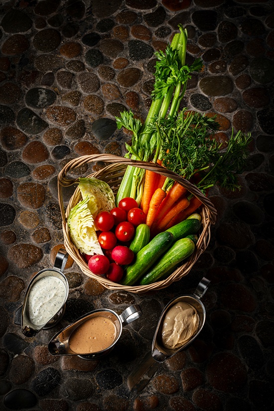 เราเริ่มต้นความอร่อยกันด้วย Farmer's Market Crudites ซึ่งเป็นผักออร์แกนิกในตะกร้าใบใหญ่พร้อมน้ำสลัด 3 รสชาติ ถัดมา คือ Empanada พายเนื้อสับที่มีรูปทรงคล้ายกับกะหรี่พัฟของไทย และ Crab cocktail เนืิ้อปูแน่นๆ มาพร้อมกับอะโวคาโด้ที่ให้ความสดชื่น