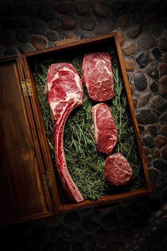 Beef (เนื้อ) : ซึ่งถือเป็นหัวใจหลักของร้านนี้ ที่เลือกนำเสนอเนื้อ 4 ส่วน ได้แก่ Sirloin, Fillet, Ribeye และ T-bone