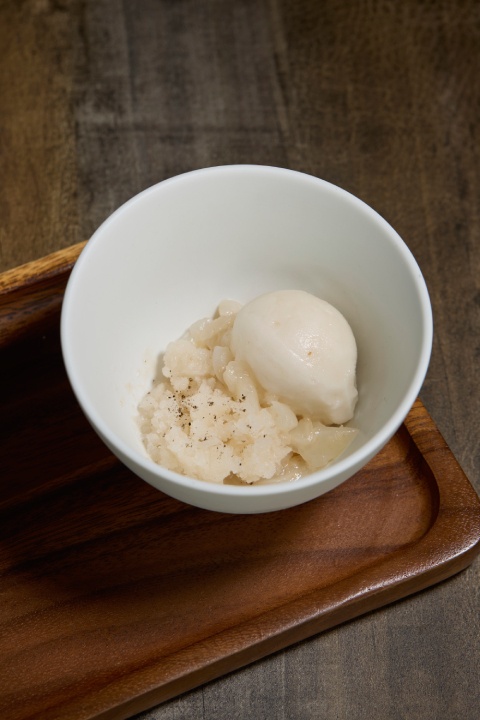 ก่อนจะเข้าสู่ช่วงของหวาน เชฟเลือกปลอบประสาทลิ้นด้วย Longan Sorbet ที่ดัดแปลงจากน้ำลำไยสดมาเป็นไอศกรีมซอร์เบต์หอมละมุน เสริมด้วยกลิ่นชาเอิร์ลเกรย์ที่ให้ความรู้สึกผ่อนคลายราวกับได้หยุดพักกลางค่ำคืนอันหรูหรา