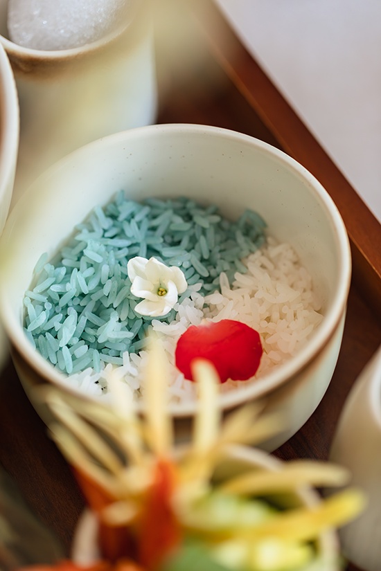 ข้าวแช่ตำรับพิเศษนี้ได้รับการรังสรรค์อย่างตั้งใจ โดยคัดสรร ข้าวหอมมะลิออร์แกนิกจากจังหวัดสุรินทร์ ผ่านการนึ่งอย่างพิถีพิถันจนได้เมล็ดข้าวเรียงตัวสวยงาม ก่อนนำมาเสิร์ฟใน น้ำลอยดอกมะลิ ที่มีกลิ่นหอมอ่อนละมุน มอบความเย็นสดชื่นในทุกคำ