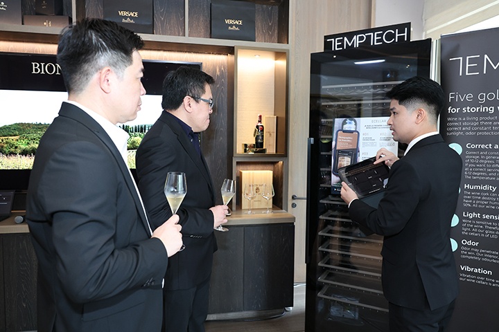 อย่างไรก็ตาม นอกเหลือจากไฮไลต์เด่นที่เกล่ามาข้างต้น เหล่าลูกค้าคนสำคัญยังได้สัมผัสกับการเปิดตัว ‘ECELLAR’ ตู้แช่ไวน์อัจฉริยะรุ่นแรกของโลกจาก TEMPTECH ที่ผลิตขึ้นจากประเทศฝรั่งเศส ในสไตล์ Minimal Luxury ถือเป็นการผสานศิลปะแห่งการเก็บไวน์เข้ากับนวัตกรรมเทคโนโลยีได้อย่างลงตัว เห็นได้จากกระจกแบบ “Triple Layer Glass” และระบบป้องกันความร้อนจากภายนอกที่ผ่านการวิจัยและทดสอบในภูมิอากาศร้อนชื้นของเอเชียโดยเฉพาะ แถมยังโดดเด่นด้วยเทคโนโลยีเชื่อมต่อข้อมูลไวน์อัจฉริยะผ่านแอปพลิเคชัน VINOTAG® ซึ่งพัฒนาร่วมกับ VIVINO® ฐานข้อมูลไวน์ที่ใหญ่ที่สุดในโลก ให้ผู้ใช้เข้าถึงรายละเอียดไวน์แต่ละขวดได้อย่างแม่นยำ เพียงถ่ายภาพฉลาก แอปพลิเคชันจะให้ข้อมูลไวน์อย่างละเอียดภายในไม่กี่วินาที พร้อมฟังก์ชันแสดงความคิดเห็น ให้คะแนน และบันทึกไวน์ที่ชื่นชอบได้ทันที