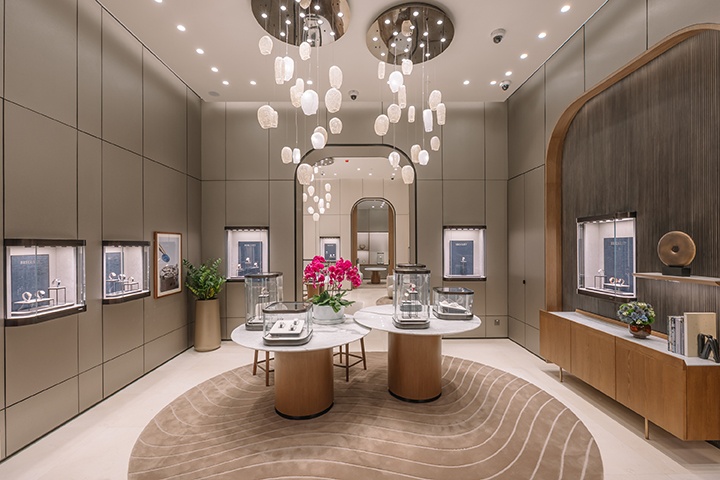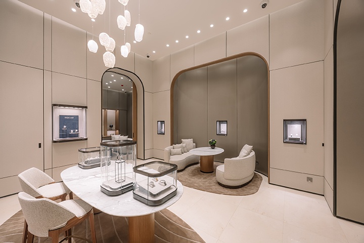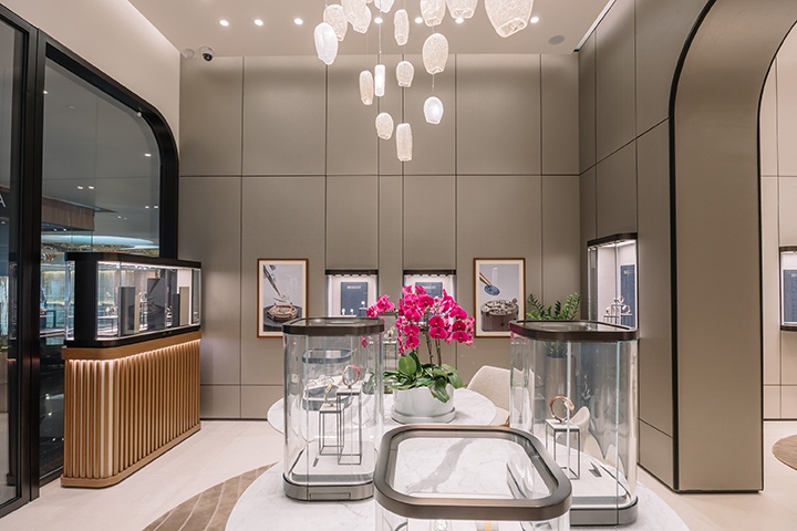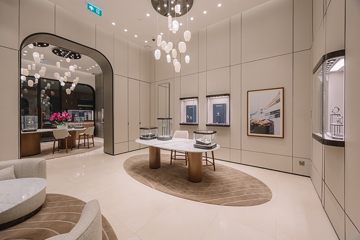 สำหรับบูทีคช็อปห่งแรก ณ ไอคอนสยาม นี้ ถ่ายทอดสถาปัตยกรรมร่วมสมัยเฉกเช่นเดียวกับบูติกสาขาสำคัญของแบรนด์ในทั่วโลก อาทิ สาขาแฟลกชิปที่ถนน Bahnhofstrasse ในมืองซูริค สวิตเซอร์แลนด์ ด้วยการตกแต่งภายในที่หรูหราและยังแฝงไปด้วยความอบอุ่นจากไม้อเมริกันวอลนัท หินอ่อน และเส้นสายที่ให้อารมณ์อ่อนช้อย พรมภายในร้านประดับลวดลาย guilloché (กิลโยเช่) อย่างประณีต ขอบเฟอร์นิเจอร์สะท้อนแรงบันดาลใจจากดีไซน์ตัวเรือนอันเป็นเอกลักษณ์ พร้อมเติมเต็มบรรยากาศด้วยโทนสีน้ำเงิน Breguet Blue อันโดดเด่นและสง่างาม ภายในบูติคยังมีโซนที่รองรับการให้บริการแบบส่วนตัว นอกจากนี้ ยังมีมุมให้คำปรึกษาแบบเอ็กซ์คลูซีฟเพื่อให้ลูกค้าได้สัมผัสกับเรือนเวลาที่ชื่นชอบอย่างใกล้ชิด