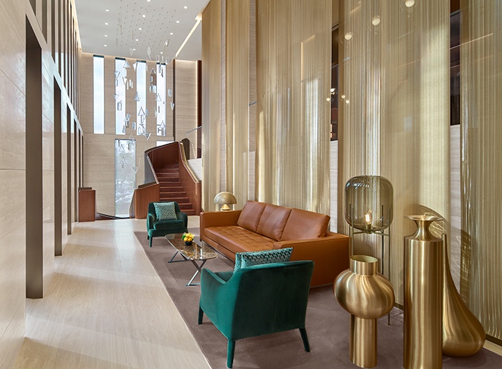 ทุกองค์ประกอบของการออกแบบภายในล้วนสะท้อนถึงสุนทรียศาสตร์ของ Rolex และเปล่งประกายคุณค่าของสัญลักษณ์มงกุฎอย่างชัดเจน ความเป็นเลิศ ความเที่ยงตรง และความพิถีพิถันในทุกรายละเอียด ถูกถ่ายทอดผ่านการเลือกใช้โทนสี วัสดุ และลวดลายของการตกแต่ง และเฟอร์นิเจอร์ทุกชิ้นที่ผ่านการคัดสรรอย่างประณีต เมื่อก้าวเข้าสู่บูทีค ผู้มาเยือนจะได้รับการต้อนรับด้วยผนังหินอ่อนสีเขียว Verde Alpi อันสง่างามบริเวณทางเข้า ก่อนจะขึ้นสู่ชั้นบนภายใต้โคมไฟระย้าท่ี่โดดเด่น ได้รับแรงบันดาลใจจากหลักบอกเวลาบนหน้าปัดนาฬิกาอันเป็นเอกลักษณ์ของแบรนด์ พร้อมด้วยม่านโลหะสีทองที่ออกแบบขึ้นเป็นพิเศษโดย Sophie Mallebranche (โซฟี มัล เลอบรองช์) ศิลปินชาวฝรั่งเศส ซึ่งทอดตัวลดหลั่นอย่างงดงามจากชั้นบนลงสู่ชั้นลอย สอดรับกับแสงท่ีตกกระทบภายในอาคารตลอดทั้งวันได้อย่างลงตัว