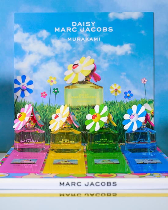 Marc Jacobs X Murakami รังสรรค์ศิลปะผ่านขวดดีไซน์เก๋และเสน่ห์ของน้ำหอม Limited Edition 4 สี 4 กลิ่นใหม่ โดยมีสีเหลืองสะท้อนความสดใสจากกลิ่นสตรอว์เบอร์รีและราสป์เบอร์รี, สีชมพู สะท้อนความหวานละมุนจากกลิ่นมะพร้าวและพีโอนีขาว, สีเขียว สะท้อนความทันสมัย มีชีวิตชีวา จากกลิ่นกล้วยบลูจาวา ผสานดอกมะลิและวานิลลา และ สีฟ้า สะท้อนความขี้เล่น สนุกสนานอย่างมีสไตล์ จากกลิ่นลูกแพร์และกุหลาบ