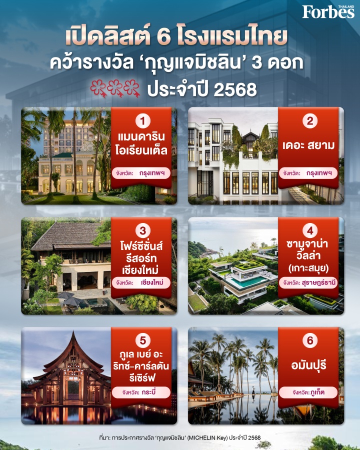 เรื่องราวอื่นๆ ที่น่าสนใจ : ‘มิชลิน ไกด์’ เผยรายชื่อ โรงแรมยอดเยี่ยม 62 แห่งในไทย ที่ได้รับรางวัล ‘กุญแจมิชลิน’