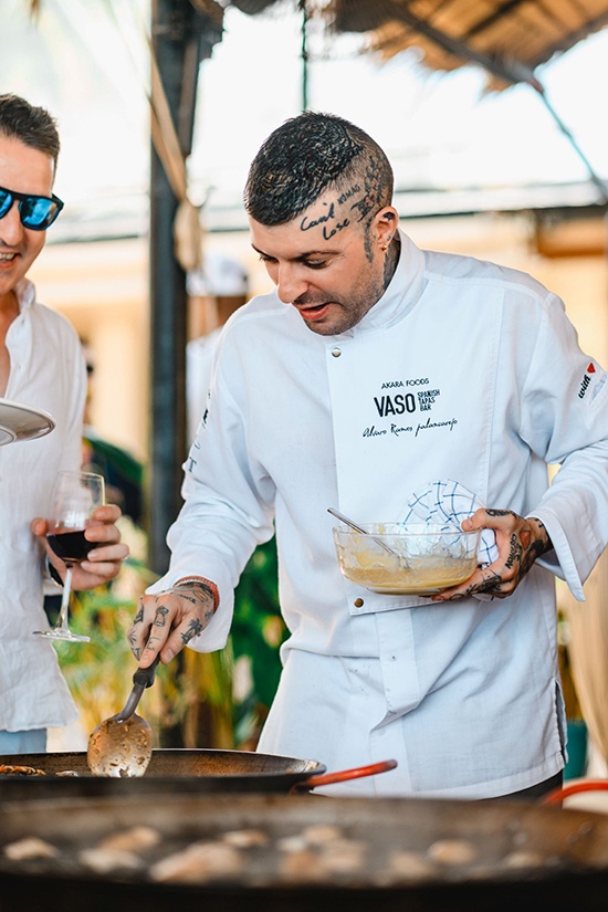 บรรยากาศปาร์ตี้ริมชายหาด เปิดฉากด้วยบุฟเฟ่ต์บรันช์หลากหลาย พร้อมสเตชันปรุงสด โดยมีแขกรับเชิญคนพิเศษ เชฟ Álvaro Ramos Palancarejo (Chef Palanca) ร่วมสร้างสีสันกับโชว์ทำอาหารเมนูซิกเนเจอร์ อาทิ หอยเชลล์ซัลโมเรโฆ่ (Scallops on Salmorejo) ปาเอย่าล็อบสเตอร์ (Paella Lobster) และอารอสเนโกร (Arroz Negro) สร้างความประทับใจให้กับแขกผู้ร่วมงานตลอดช่วงบ่ายต่อเนื่องถึงช่วงค่ำ