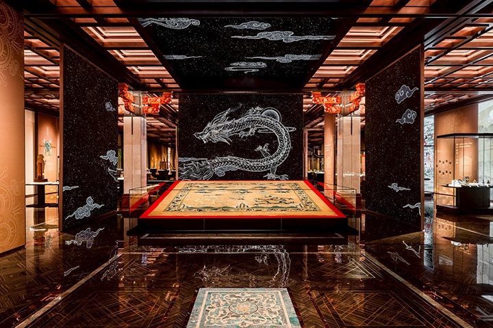 บริเวณที่จัดแสดงพรมสมัยราชวงศ์หมิงหรือราชวงศ์ชิง (Dragon-Patterned Throne Carpet) ผนังด้านหลังเป็นภาพเคลื่อนไหว เริ่มจากท้องพระโรงต่อมามีฮ่องเต้ประทับบนบัลลังก์ ก่อนเลือนหายกลายเป็นภาพมังกรเคลื่อนไหวอยู่บนเพดาน