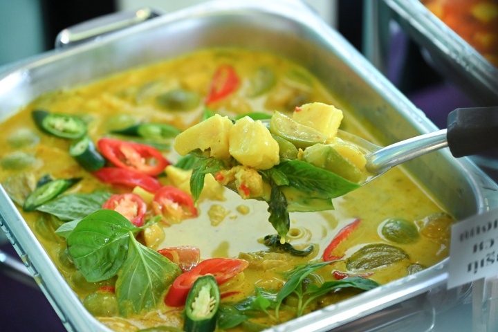 นอกจากทุเรียนแล้ว ทางสวนจะเสิร์ฟพร้อมเมนูอาหารที่ตีความทุเรียนในหลากหลายรูปแบบ ตั้งแต่อาหารคาวไปจนถึงอาหารหวาน ไม่ว่าจะเป็นแกงเขียวหวานทุเรียน ยำทุเรียน ส้มตำทุเรียน แกงส้มทุเรียน บัวลอยทุเรียน ข้าวเหนียวทุเรียน และไอศกรีมทุเรียน พร้อมกับน้ำสมุนไพรที่มีฤทธิ์ดับร้อนและแก้ร้อนใน