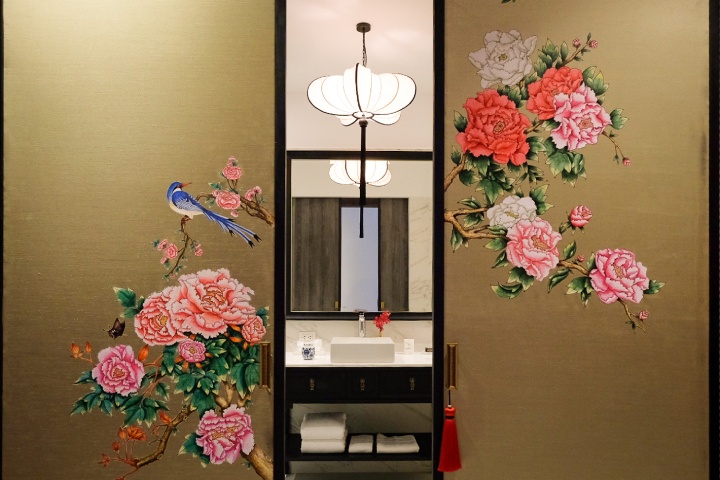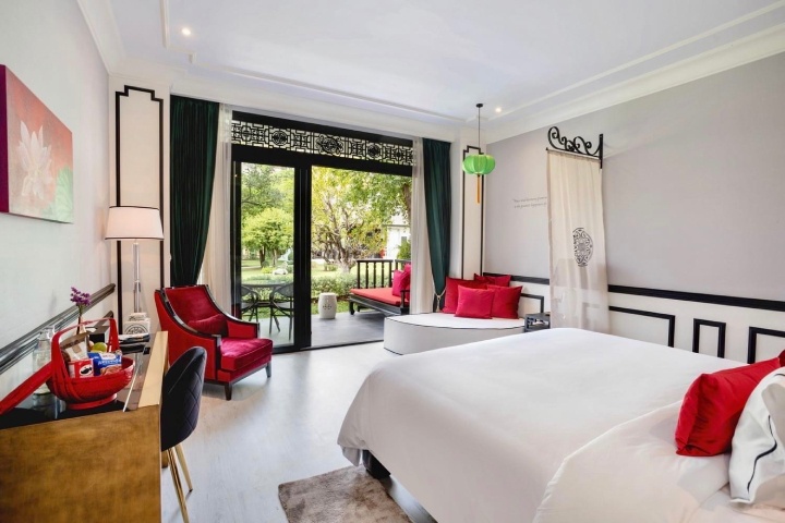ขณะที่ภายในห้องพักทั้ง 35 ห้อง ตั้งแต่ห้อง Pristine Deluxe ไปจนถึง The Soul Suites ถูกตกแต่งอย่างละเมียดละไมด้วยผ้าไหมแท้สีเขียวปีกแมลงทับเพื่อเติมความชุ่มชื่นให้แก่จิตใจ พร้อมงานศิลปะวาดมือลายดอกโบตั๋นและภาพวาดอะคริลิกที่งดงามราวกับงานศิลป์ชิ้นเอก