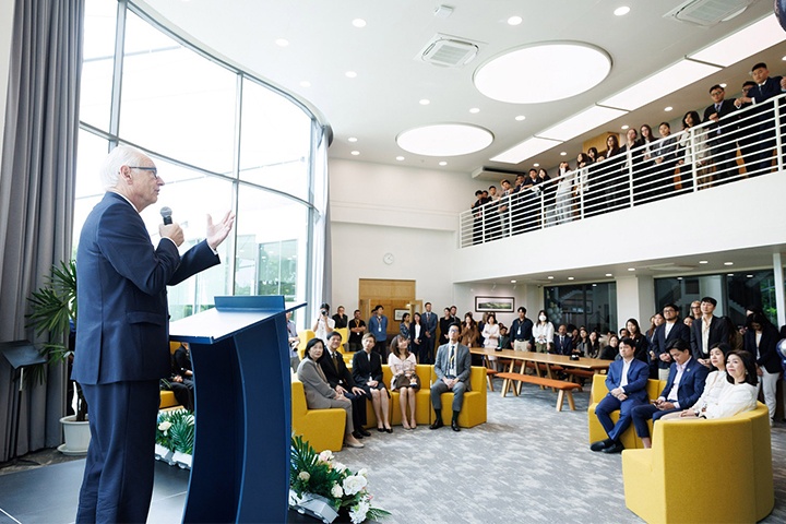 "อาคาร Sixth Form Centre แห่งนี้จะไม่มีความหมายเลย หากไม่มีผู้คนที่ทำให้มันมีชีวิต หวังว่านักเรียนทุกคนจะได้ใช้ Sixth Form Centre แห่งนี้อย่างเต็มที่และเกิดประโยชน์สูงสุด ทั้งในด้านการเรียนรู้ การเติบโต ตลอดจนการสร้างแรงบันดาลใจให้กันและกัน เรียนรู้ที่จะทำงานร่วมกับเพื่อน เรียนรู้ที่จะสร้างมิตรภาพ เพราะมิตรภาพในช่วงวัยนี้คือสิ่งล้ำค่าที่สุดในชีวิต ดังนั้น ขอให้นักเรียนทุกคนใช้ช่วงเวลาในวัยนี้ให้คุ้มค่า สนุกกับการเรียนรู้ และสนุกกับการสร้างมิตรภาพที่แท้จริง"