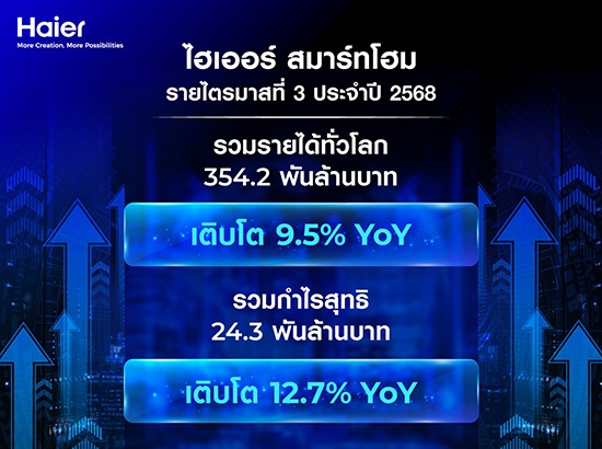 บริษัท ไฮเออร์ สมาร์ท โฮม จำกัด ประกาศผลประกอบการไตรมาส 3 ปี 2025 โดยยังคงสร้างผลการดำเนินงานที่เติบโตอย่างแข็งแกร่งและมีคุณภาพอย่างต่อเนื่อง มีรายได้เพิ่มขึ้น 9.5% อยู่ที่ 77.56 พันล้านหยวน คิดเป็นเงินไทย 354,153 ล้านบาท กำไรสุทธิส่วนที่เป็นของบริษัทแม่ เพิ่มขึ้น 12.7% อยู่ที่ 5.34 พันล้านหยวน คิดเป็นเงินไทย 24,377 ล้านบาท และมีกระแสเงินสดจากการดำเนินงานในรอบ 9 เดือน อยู่ที่ 17.49 พันล้านหยวน คิดเป็นเงินไทย 79,857 ล้านบาท