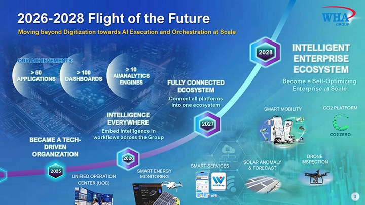 จรีพร จารุกรสกุล ประธานคณะกรรมการบริหารและประธานเจ้าหน้าที่บริหารกลุ่มบริษัท ดับบลิวเอชเอ คอร์ปอเรชั่น จำกัด (มหาชน) กล่าวว่า ปี 2569 เป็นปีแห่งความท้าทายรอบด้าน รวมถึงแนวโน้มด้าน ESG ที่เป็นมาตรฐานบังคับและมาตรการการค้าโลกที่เข้มงวดขึ้น อย่างไรก็ตาม WHA มองว่านี่คือโอกาสของประเทศไทยในการยกระดับโครงสร้างพื้นฐาน พลังงานสะอาด และระบบนิเวศอุตสาหกรรมครบวงจร เพื่อรองรับเศรษฐกิจใหม่ (New Economy) โดยเฉพาะกลุ่ม EV เซมิคอนดักเตอร์ ดาต้าเซ็นเตอร์ คลาวด์ และพลังงานหมุนเวียน ภายใต้พันธกิจ “WHA: SHAPE THE FUTURE FOR THAILAND” บริษัทมุ่งยกระดับประสิทธิภาพทั้งองค์กร ผ่านการเชื่อมโยงแพลตฟอร์มเข้าสู่ระบบนิเวศเดียว ผสานเทคโนโลยีและนวัตกรรมเพื่อสร้างมูลค่าเพิ่มสูงสุดแก่ผู้มีส่วนได้เสีย