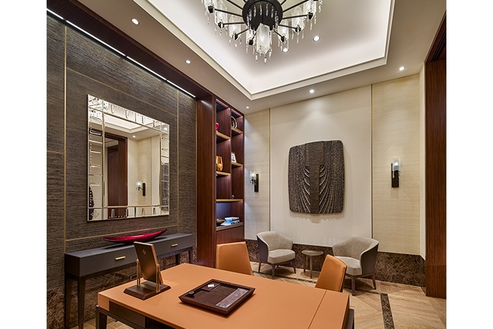 ด้านหลังเป็นพื้นที่รับรองส่วนตัวที่จัดสรรไว้สำหรับการชื่นชมและรับมอบนาฬิกาในบรรยากาศที่ผ่อนคลาย เปิดรับความโปร่งสบายด้วยหน้าต่างบานยาวที่ทอดรับแสงธรรมชาติ พร้อมชุดโซฟาที่จัดวางไว้เสมือนห้องนั่งเล่น ให้ความรู้สึกเป็นส่วนตัวและอบอุ่น เหมาะสำหรับการต้อนรับสมาชิกแบบครอบครัวอย่างแท้จริง