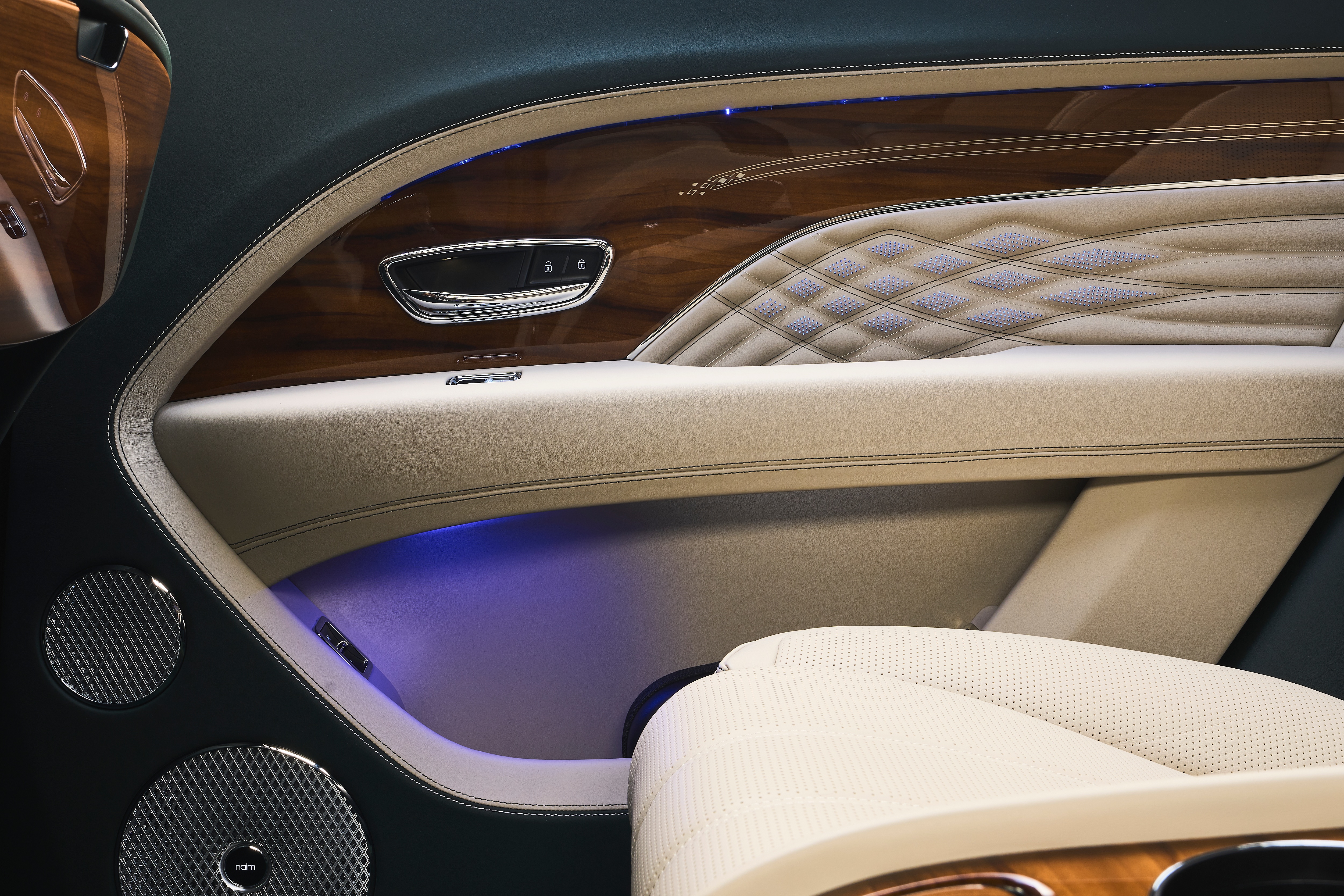 ภายในงานเปิดตัว อัครยนตรกรรมแบบอเนกประสงค์ รุ่นฐานล้อยาวพิเศษ โดดเด่นด้วยเฉดสีเขียวเข้ม Midnight Emerald มอบความรู้สึกสุขุม นุ่มลึก ในแบบผู้บริหาร และล้ออัลลอยด์แบบ 10 ก้าน ขนาด 22 นิ้ว ออกแบบพิเศษเฉพาะรุ่น Azure ภายในห้องโดยสารแบบ 4 ที่นั่งตกแต่งด้วยหนังที่รังสรรค์ขึ้นเป็นพิเศษด้วย 2 เฉดสีกับเฉดสีขาว Linen และ เฉดสีเขียว Cumbrian Green พร้อมกับการตกแต่งด้วยวีเนียร์แบบ Burr Walnut by Mulliner ออปชันวีเนียร์ระดับซิกเนเจอร์สุดคลาสสิก และด้วยฐานล้อที่ยาวขึ้นจึงมอบพื้นที่ภายในห้องโดยสารที่มีขนาดกว้างขึ้น พร้อมกับเทคโนโลยีความสะดวกสบายภายในห้องโดยสาร ตอบโจทย์ประสบการณ์การเดินทางแบบเหนือระดับ