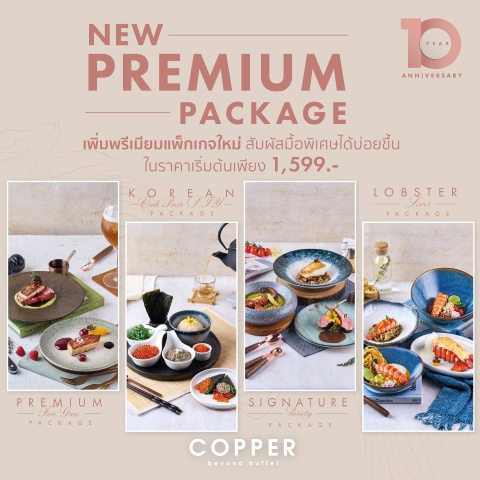 คอปเปอร์ บียอนด์ บุฟเฟต์ (Copper Beyond Buffet) ฉลองครบรอบ 10 ปี เดินหน้าสู่ทศวรรษใหม่ภายใต้แนวคิด “The New Original” ปรับกลยุทธ์ครั้งใหญ่ด้วยการ “รีเซ็ตราคา” บุฟเฟ่ต์สาขา The Sense ปิ่นเกล้า ให้เข้าถึงง่ายขึ้น เริ่มต้นเพียง 999++ บาท (1,176 บาทสุทธิ) สวนทางต้นทุนที่ปรับสูงขึ้น เพื่อเปิดโอกาสให้ผู้บริโภคเข้าถึงประสบการณ์อาหารพรีเมียมได้บ่อยขึ้น ขณะที่สาขาเกษรอัมรินทร์ยังคงราคาเดิม