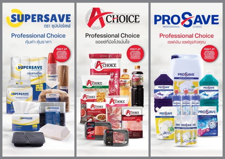ปัจจุบันโก โฮลเซลล์ มีสินค้า Own Brand อยู่ทั้งหมด 1,765 รายการ แบ่งเป็น สินค้าจากแบรนด์ A CHOICE ซึ่งจำหน่ายอาหาร 4 ประเภท ได้แก่ อาหารสดและอาหารแช่แข็ง เครื่องเทศและเครื่องปรุง อุปกรณ์และของใช้ ทั้งหมด 1,052 รายการ อีก 699 รายการเป็นสินค้าภายใต้แบรนด์ SUPER SAVE ซึ่งจำหน่ายผลิตภัณฑ์กลุ่มบรรจุภัณฑ์อาหารและอาหารพื้นฐาน และที่เหลืออีก 14 รายการอยู่ภายใต้แบรนด์ PRO SAVE ซึ่งเป็นผลิตภัณฑ์กลุ่ม Non-Food เน้นสินค้าหมวดเคมีภัณฑ์และอุปกรณ์ทำความสะอาด สำหรับผู้ประกอบการมืออาชีพและลูกค้าธุรกิจ อาทิ น้ำยาถูพื้น และน้ำยาล้างจาน เป็นต้น