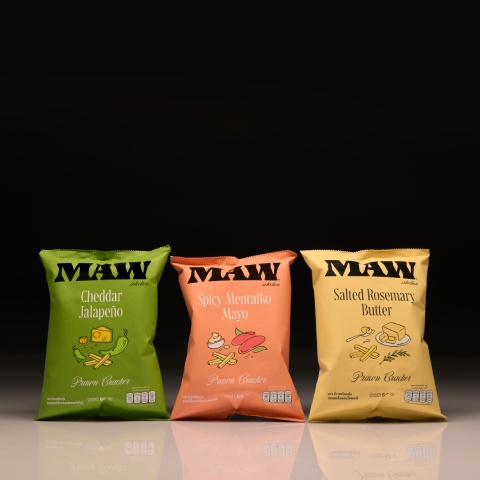 จากความมุ่งมั่นในการสร้างมาตรฐานใหม่ให้กับตลาดขนมในไทย MAW (มาว) เลือกเปิดตัวโปรดักต์แรกด้วยข้าวเกรียบกุ้งพรีเมียม (Premium Prawn Cracker) ซึ่งพัฒนาขึ้นจากอินไซต์ของผู้บริโภครุ่นใหม่ ตั้งแต่การคัดเลือกวัตถุดิบเกรดสูงเพื่อลดกลิ่นคาวกุ้งแบบเดิมๆ การออกแบบรูปทรงให้ดูทันสมัยคล้าย French Fries Cut ไปจนถึงการคิดค้นรสชาติที่ได้แรงบันดาลใจจาก Global Taste และนำมาปรับให้เข้ากับรสนิยมของคนไทย