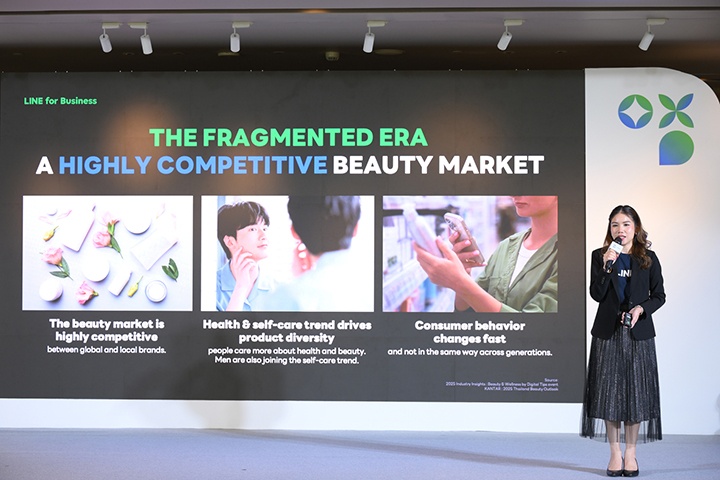 เปรียว คเนจร ณ อยุธยา หัวหน้าทีมที่ปรึกษาธุรกิจ Personal Care, LINE ประเทศไทย เผยว่า “ข้อมูลจาก Custom Market Insight ตลาดความงามของไทยในปีนี้มีมูลค่าอยู่ที่กว่า 170,000 ล้านบาท คาดว่าจะเติบโตต่อเนื่องจนถึงปี 2034 ในอัตรา 5.45% ต่อปี โดยแบรนด์ต้องเผชิญการแข่งขันที่ซับซ้อนขึ้น ทั้งจากแบรนด์ระดับโลกและแบรนด์ไทยที่ต่างพัฒนาเทคโนโลยีใหม่เพื่อแย่งชิงความสนใจของผู้บริโภค ขณะที่เทรนด์ Health & Self-Care ทำให้ผู้บริโภคทั้งชายหญิงและในหลากหลายช่วงอายุหันมาใส่ใจสุขภาพและความงามมากขึ้น ส่งผลให้ตลาดมีความหลากหลายและเปลี่ยนแปลงรวดเร็วกว่าเดิม จนแบรนด์ต้องหันมาแข่งขันกันที่ “ความเข้าใจ” เพื่อสร้าง “ความสัมพันธ์” การทำ CRM จึงกลายเป็นสมรภูมิใหม่ที่แบรนด์ควรใส่ใจอย่างจริงจัง