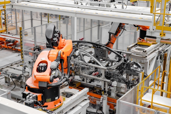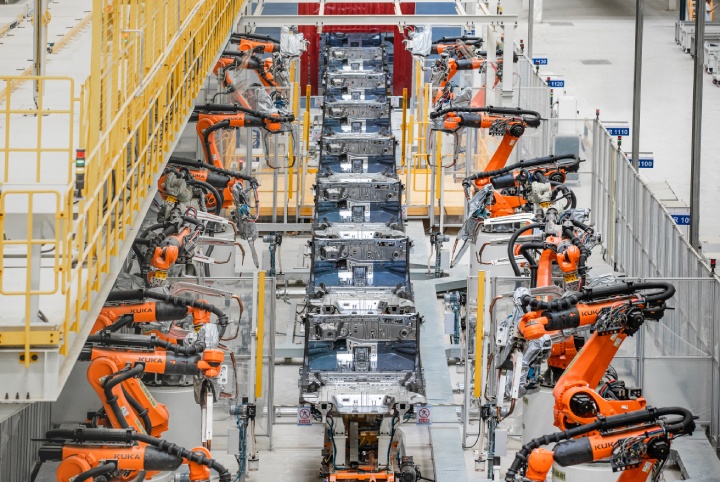 1. Stamping Plant สายการผลิตชิ้นส่วนโครงสร้างตัวรถ เช่น ฝากระโปรง ประตู และแผงตัวถัง ด้วยอัตราการผลิตสูงถึง 15 ชิ้นต่อนาที ตั้งแต่ขั้นตอนการปั๊มขึ้นรูปไปจนถึงการลำเลียงชิ้นส่วนล้วนดำเนินการโดยระบบอัตโนมัติ แรงงานมนุษย์มีบทบาทเพียงในการป้อนแผ่นเหล็กและตรวจสอบคุณภาพขั้นสุดท้าย
