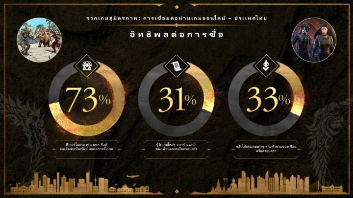 นอกจากนี้ ความต้องการที่จะใช้เกมเป็นเครื่องมือในการเชื่อมต่อกับผู้อื่นยังส่งผลต่อการตัดสินใจซื้อของผู้เล่นเกมชาวไทยด้วย จากการสำรวจ 73% ระบุว่าฟีเจอร์ทางสังคม เช่น แชทในเกม, กิลด์ และลีดเดอร์บอร์ด มีความสำคัญต่อการตัดสินใจว่าจะซื้อหรือไม่ซื้อวิดีโอเกมออนไลน์นั้นๆ