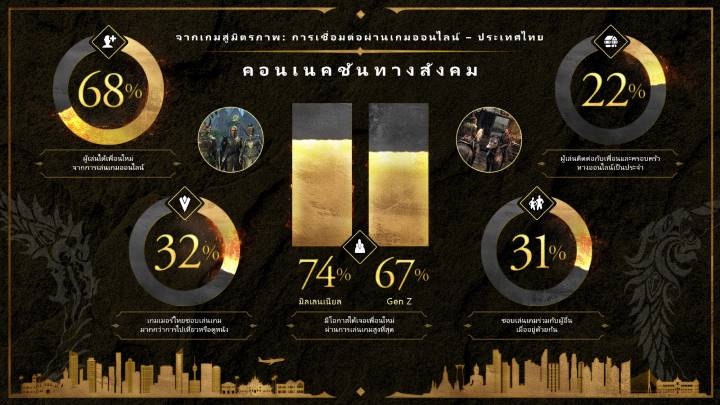 โดยประเด็นสำคัญจากผลวิจัยครั้งนี้สรุปได้ 3 ด้าน คือ 1. การสร้างมิตรภาพ เกมเมอร์ไทยกว่า 2 ใน 3 โดยเฉพาะในกลุ่มคนรุ่นใหม่ สร้างมิตรภาพใหม่ๆ ผ่านเกมออนไลน์ 2. เวลาของครอบครัว เกือบ 1 ใน 5 ของผู้เล่นเกมเชื่อว่าการเล่นเกมร่วมกันช่วยให้สามารถติดต่อกับเพื่อนหรือครอบครัวได้อย่างมีประสิทธิภาพมากกว่าการคุยโทรศัพท์หรือวิดีโอคอล และ 3. ฟีเจอร์โซเชียลคือหัวใจ โดย 73% ของผู้เล่นให้ความสำคัญกับเกมที่มีฟีเจอร์ทางสังคม เช่น ระบบแชทในเกม, กิลด์ และเครื่องมือการทำงานร่วมกันอื่นๆ เมื่อตัดสินใจเลือกเกมที่จะเล่น