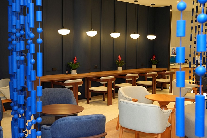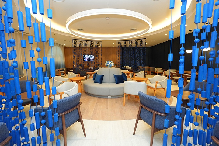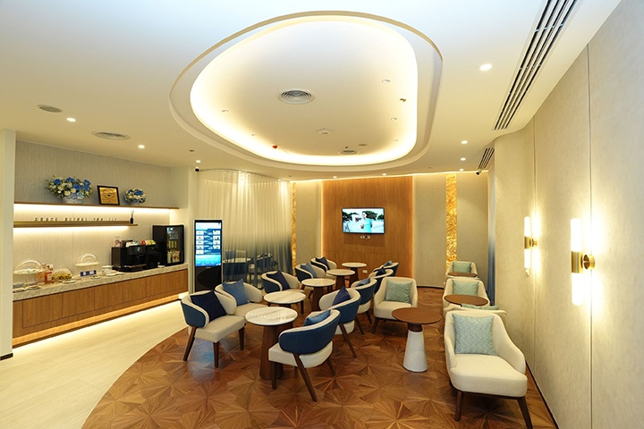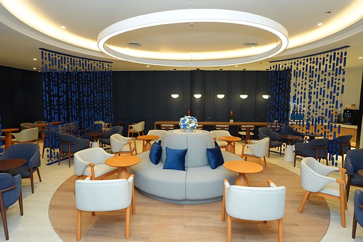 • บูทีคเลานจ์ (Boutique Lounge) - สำหรับผู้โดยสารชั้นประหยัด ได้รับแรงบันดาลใจจากสีสันของท้องทะเลและปะการัง ตกแต่งด้วยลวดลายหินธรรมชาติที่ให้กลิ่นอายของการพักผ่อนริมชายฝั่งอันอบอุ่นและผ่อนคลาย การผสมผสานลวดลายไม้ กับโทนสีน้ำเงินเข้มของท้องทะเล สร้างบรรยากาศแห่งความสงบรื่นรมย์ หน้าต่างกระจกโค้งใสมองเห็นทิวทัศน์ของสนามบิน เพิ่มความรู้สึกเชื่อมโยงกับการเดินทางที่กำลังจะเริ่มต้นอย่างมีชีวิตชีวา ทั้งสองโซนมาพร้อมสิ่งอำนวยความสะดวกครบครัน ทั้งมุมของว่าง เครื่องดื่ม และบริการอินเทอร์เน็ตไร้สาย (Wi-Fi) เพื่อให้ทุกช่วงเวลาก่อนออกเดินทางเต็มไปด้วยความสะดวกสบาย