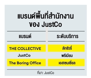 "THE COLLECTIVE One Bangkok ไม่ใช่เพียงแค่พื้นที่ทำงานธรรมดา แต่เป็นพื้นที่สำหรับการแลกเปลี่ยนไอเดีย การสร้างพันธมิตรทางธุรกิจ และการขับเคลื่อนความสำเร็จในระดับสากล” Kong ยืนยันพร้อมเผยว่า ปัจจุบัน JustCo มีแบรนด์พื้นที่สำนักงานแบบยืดหยุ่น 3 แบรนด์ ซึ่งครอบคลุมตลาดทั้งแบบเบสิก ระดับกลาง และระดับบน
