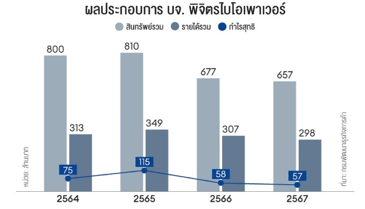 ปี 2567 บจ. พิจิตรโรงสีร่วมเจริญ 2 ไรซ์ มีรายได้ 492.1 ล้านบาท กำไรสุทธิ 5.7 ล้านบาท ขณะที่ บจ. ร่วมเจริญพัฒนาการข้าว มีรายได้ 411.7 ล้านบาท ขาดทุน 535,956.71 บาท ส่วนอีก 2 บริษัทซึ่งดำเนินธุรกิจโรงไฟฟ้าชีวมวลประกอบด้วย 1. บจ. พิจิตรไบโอเพาเวอร์ มีรายได้และกำไรสุทธิ 298.4 และ 57 ล้านบาท 2. บจ. อุตรดิตถ์ กรีน เพาเวอร์ รายได้และกำไรสุทธิ 321.1 และ 89.3 ล้านบาท
