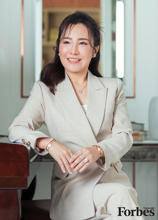 “เป็นตลาดเปิด 24 ชั่วโมง ลุยเองทุกอย่าง เราไปเช่าพื้นที่ตรงนั้นมีหลายเจ้าที่เป็นแบรนด์บริษัท พออยู่ตัวก็กลับมาเป็นเซลส์ และเรียนปริญญาโทไปด้วยที่มหิดล สาขาผู้ประกอบการ และเข้ามาช่วยดูโรงงาน การขาย ก็ศึกษาไปเรื่อยๆ จนปัจจุบัน...คุณพ่อสร้างตัวด้วยตนเอง ทำงานการเมือง เราก็รู้แต่แรกว่ามีหน้าที่ที่จะสานต่อก็ค่อยๆ ศึกษามา...ตอนแรกให้น้องชายมาช่วยงาน แต่ตอนนี้ไปช่วยงานการเมืองคุณพ่อและดูแลทีมฟุตบอล ส่วนน้องชายคนเล็กดูแลฟาร์มกับอาหารสัตว์ เรามี 6 ฟาร์ม และมีธุรกิจอาหารสัตว์ที่ feed ให้ฟาร์ม...เราจึงต้องรับทั้งหมดของโรงงานโดยปริยาย”