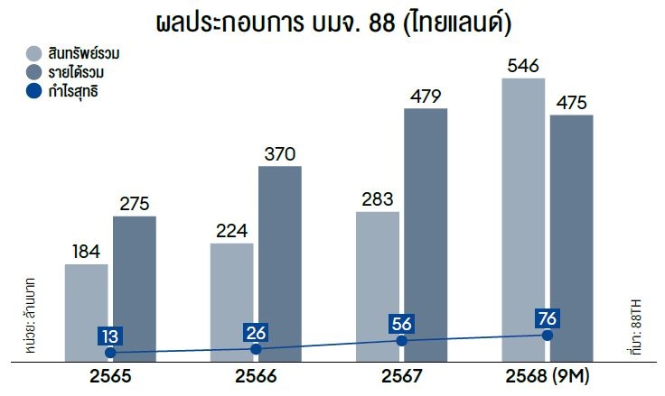 “หลังจากนั้น วิกฤตโควิด-19 กิจการล็อกดาวน์ ทำให้ธุรกิจเราสะดุด เพราะช่องทางการขายหลักเราผ่านห้างสรรพสินค้า และคนใส่มาสก์ใช้เครื่องสำอางลดลง ช่วงนั้นเราผลิตเจลแอลกอฮอล์ขายประมาณ 2-3 เดือน ซึ่งการปรับตัวรวดเร็วช่วยให้เรามียอดขายสามารถดูแลบริษัทได้ แต่เรายังมองหาธุรกิจที่เติบโตได้ในระยะยาว” นพรัตน์ มาลัยวงค์ ผู้ก่อตั้งและกรรมการ บริษัท 88 (ไทยแลนด์) จำกัด (มหาชน) หรือ 88TH กล่าวถึงความมุ่งมั่นสร้างเส้นทางธุรกิจหลังจากสำเร็จการศึกษาปริญญาตรี นวัตกรรมทางการจัดการ มหาวิทยาลัยเซนต์จอห์น ด้วยการร่วมก่อตั้งบริษัทจำหน่ายผลิตภัณฑ์ด้านสุขภาพและความงามเมื่อวันที่ 28 กรกฎาคม ปี 2558 ซึ่งเริ่มจากกลุ่มผลิตภัณฑ์เครื่องสำอางแบรนด์ Ver.88 และพัฒนาผลิตภัณฑ์ให้หลากหลายมากขึ้นอย่างต่อเนื่อง ควบคู่กับการขยายช่องทางการจำหน่ายจากระบบตัวแทนจำหน่ายที่กระจายทั่วประเทศสู่การจัดจำหน่ายผ่านร้านค้าสมัยใหม่ (modern trade)