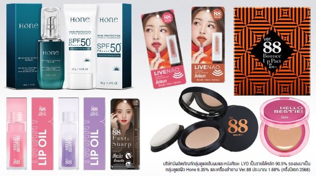 ในปัจจุบันบริษัทจัดจำหน่ายผลิตภัณฑ์ 3 กลุ่มภายใต้ 3 แบรนด์หลัก ประกอบด้วย กลุ่มผลิตภัณฑ์ดูแลเส้นผมและหนังศีรษะแบรนด์ LYO ได้แก่ แชมพู ครีมนวดผม และแฮร์โทนิคลดผมขาดร่วง (LYO Anti-Hair Loss) แชมพูปิดผมขาว (LYO Hair Color) และผลิตภัณฑ์ดูแลเส้นผมจากสารสกัดสมุนไพร (LYO Herbal) กลุ่มผลิตภัณฑ์ดูแลผิวแบรนด์ Hone ได้แก่ เซรั่ม และครีมกันแดด รวมถึงกลุ่มผลิตภัณฑ์เครื่องสำอางแบรนด์ Ver.88 ได้แก่ แป้งผสมรองพื้นหรือแป้งดินน้ำมัน รองพื้น คุชชั่น บลัชเชอร์ ลิปสติก ลิปออยล์ อายไลเนอร์ ดินสอเขียนคิ้ว เป็นต้น