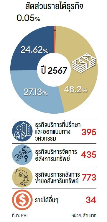 ขณะที่ปรับโครงสร้างองค์กรเป็น 3 ธุรกิจหลัก ประกอบด้วยกลุ่มธุรกิจที่ปรึกษาและออกแบบทางวิศวกรรม (engineering) เน้นความแข็งแกร่งในการดำเนินงานและความสามารถการทำกำไรด้วยการขยายฐานผู้ใช้บริการนอกเครือเป็นหลัก เช่น หน่วยงานของภาครัฐ รัฐวิสาหกิจ งานภาคเอกชน รวมถึงกลุ่มธุรกิจบริหารจัดการอสังหาริมทรัพย์ (living service) ซึ่งให้บริการบริหารจัดการสินทรัพย์ การร่วมวางแผนตกแต่ง จัดหาบริการและสิ่งอำนวยความสะดวก โดยมุ่งเน้นการพัฒนาคุณภาพการบริการเพื่อเพิ่มรายได้ในธุรกิจอื่น และสุดท้ายกลุ่มธุรกิจนายหน้าขายอสังหาริมทรัพย์ (brokerage) เน้นการขยายงานด้านการขาย การเช่าอสังหาริมทรัพย์ ซึ่งจะเป็นสัดส่วนงานหลักของบริษัทในอนาคต
