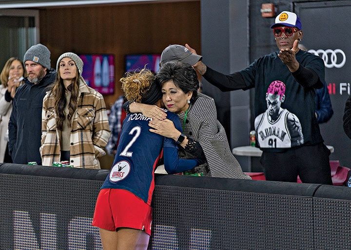 แต่อย่าสับสนว่าเธอถ่อมตนเพราะไม่มั่นใจ “พอเธอเดินเข้ามาในห้องทุกคนจะหันไปสนใจทันที ซึ่งมันยากนะ โดยเฉพาะในวงการที่ผู้ชายเป็นใหญ่” เศรษฐีพันล้านตำนาน NBA อย่าง Earvin “Magic” Johnson ซึ่งเข้ามาถือหุ้นส่วนน้อยและเป็นหุ้นส่วนเชิงกลยุทธ์ของทีม Spirit ตั้งแต่ปีที่แล้วกล่าว ส่วน Berman ประธานเจ้าหน้าที่บริหาร NWSL เล่าถึงตอนที่เธอพบกับ Kang เป็นครั้งแรกในการทานอาหารมื้อเช้าเมื่อปี 2022 ว่า “เธอเป็นมนุษย์ที่เนี้ยบที่สุดเท่าที่ฉันเคยเห็นมา ฉันว่าดูน่ากลัวนิดๆ ด้วย”