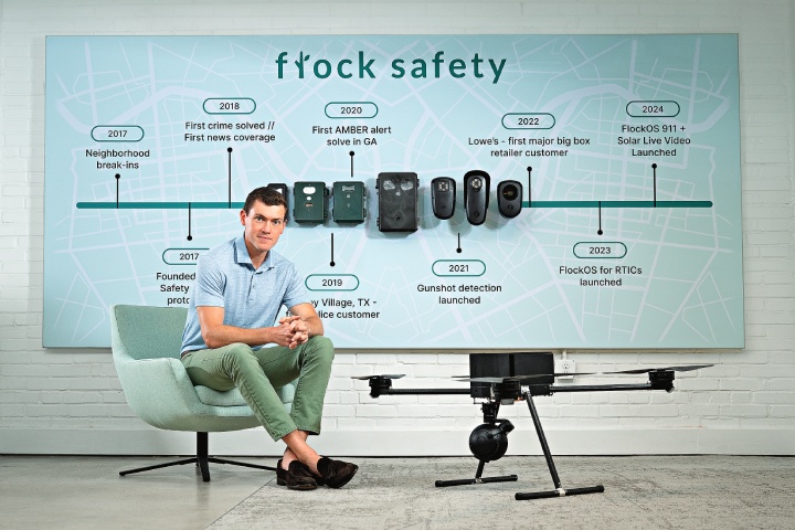 Flock Safety ธุรกิจขนาด 7.5 พันล้านเหรียญสหรัฐฯ ได้ติดตั้งกล้องที่ขับเคลื่อนด้วย AI ทั่วสหรัฐฯ และได้กลายเป็นเครื่องมือเฝ้าระวังที่ตำรวจเลือกใช้ปฏิบัติงานเป็นอันดับต้นๆ ปัจจุบัน CEO ของบริษัท Garrett Langley มองว่า มียักษ์ใหญ่เทคโนโลยีตำรวจ Axon และ DJI ผู้ผลิตโดรนสัญชาติจีนเป็นคู่ต่อกร ส่วนเส้นทางของเขาสู่เป้าหมาย (ที่ไม่เคยจบสิ้น) อันสูงสุดของเขาก็คือ ลดอาชญากรรมทั้งหมดทั่วอเมริกา