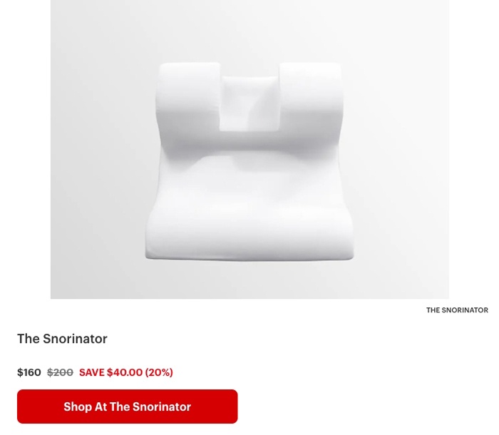 อย่างไรก็ตาม หมอน The Snorinator นี้ มีราคาจำหน่ายอยู่ที่ 160 เหรียญ แต่อาจจะไม่เหมาะสำหรับผู้ที่มีภาวะหยุดหายใจขณะหลับ โดย Ecker บอกว่า "ผมพิสูจน์แล้วและมั่นใจได้ว่ามันใช้งานได้ดีจริงๆ และการออกแบบหมอนที่ได้รับสิทธิบัตรนี้ จะช่วยฝึกให้ทุกคนนอนหงาย ตัวเหยียดตรงได้อย่างสบาย ทำให้ในที่สุดคู่รักสามี-ภรรยา สามารถนอนหลับพักผ่อนได้อย่างสงบ” และเพื่อความอุ่นใจ ผลิตภัณฑ์ชิ้นนี้ไม่ตรงกับความต้องการของลูกค้า ก็สามารถส่งคืนกลับได้ภายในระยะเวลา 30 วัน โดยจะมีค่าธรรมเนียมการคืนสินค้า: หมอนใบละ 60 เหรียญ, ปลอกหมอนใบละ 10 เหรียญ และถุงอีก 15 เหรียญ ด้วยนั่นเอง