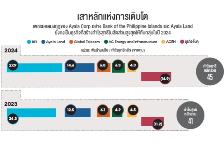 ช่วง 3 ทศวรรษที่ผ่านมา Jaime Augusto และ Fernando Zobel de Ayala อาของ Mariana นำพา Ayala Corp ขยายธุรกิจจากธนาคารและอสังหาริมทรัพย์ไปสู่กลุ่มโทรคมนาคมและสาธารณูปโภค กระทั่งล่าสุดรุกตลาดการศึกษาและการดูแลสุขภาพ แต่ BPI และ Ayala Land ยังคงเป็นแหล่งรายได้หลักของทางกลุ่ม ซึ่งทำเงินได้ในสัดส่วนประมาณ 95% ของกำไรสุทธิหลักรวม 4.5 หมื่นล้านเปโซในปี 2024