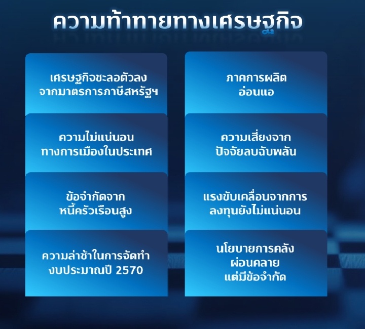 ในด้านของนโยบาย ศักดิ์ชัยเผยว่าไม่อยากให้เป็นในลักษณะ “หว่านแห” หรือออกมาเพื่อแข่งขันกันทางการเมืองเพียงอย่างเดียว แต่ควรเป็นนโยบายที่ผ่านการคิดอย่างรอบด้าน มีผลลัพธ์ที่วัดได้ และตอบโจทย์โครงสร้างเศรษฐกิจของประเทศจริงๆ โดยเฉพาะในช่วงที่สัดส่วนหนี้สาธารณะต่อ GDP ขยับขึ้นใกล้ระดับ 70% การใช้งบประมาณเพียงอย่างเดียวอาจไม่ใช่คำตอบ