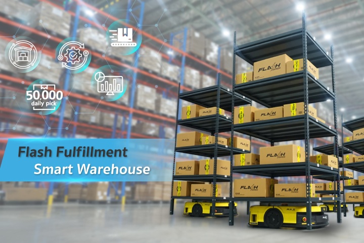 Flash Fulfillment เดินหน้ายกระดับระบบโลจิสติกส์ของอาเซียน ด้วยการพัฒนา Smart Fulfillment Hub หรือศูนย์ฟูลฟิลล์เม้นท์เทคโนโลยีขั้นสูงที่ใหญ่ที่สุดในภูมิภาค โดยนำเทคโนโลยีหุ่นยนต์ระบบ AI และนวัตกรรมการบริหารจัดการคลังสินค้าอัตโนมัติแบบ 24 ชั่วโมง มาใช้ตลอดกระบวนการพร้อมเชื่อมต่อระบบหลังบ้านกับทุกแพลตฟอร์มอีคอมเมิร์ซ เพื่อรองรับการเติบโตของตลาดออนไลน์อย่างมีประสิทธิภาพ