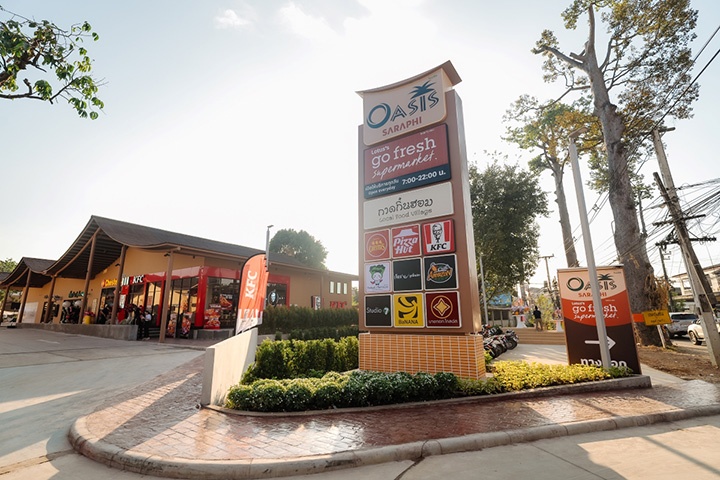 Lotus’s Oasis Saraphi ถูกพัฒนาในแนวคิด “โอเอซิสแห่งความสุขของชุมชน” บนพื้นที่โครงการกว่า 11 ไร่ โดยหยิบยกเสน่ห์และอัตลักษณ์ของ “สารภี” มาถักทอเป็นรายละเอียดทั่วทั้งพื้นที่ เพื่อให้ทุกการเดินได้ดื่มด่ำกับวัฒนธรรมท้องถิ่นในรูปแบบร่วมสมัย ตั้งแต่ดีไซน์หลังคาที่นำเส้นสายโค้งมนจากสถาปัตยกรรมล้านนามาประยุกต์อย่างอ่อนช้อย สร้างความอบอุ่นและกลมกลืนกับธรรมชาติ การนำผ้าพิมพ์ลุนตยา จากแบรนด์ SHWE ซึ่งได้รับแรงบันดาลใจจากวัฒนธรรมล้านนา–พม่า มาต่อยอดสู่ดีไซน์ที่ร่วมสมัย เข้าถึงง่าย