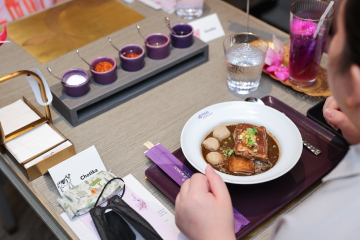 โดยวันนี้ นาราไทย คูซีน สร้างตำนานใหม่อีกครั้ง ด้วยการติดปีกให้ก๋วยเตี๋ยวเรือทยานขึ้นเหนือเมฆ ชวนสัมผัสอรรถรสบนฟ้า ในชื่อเมนูหรู ‘ก๋วยเตี๋ยวเรือบิน’ (Nara Boat Noodles Sky Edition) บริการสำหรับผู้โดยสารชั้นธุรกิจ (Royal Silk Class) และเฟิร์ส คลาส (Royal First Class) เส้นทางบินยุโรป และออสเตรเลีย ตั้งแต่วันนี้จนถึงกันยายนปี 2569