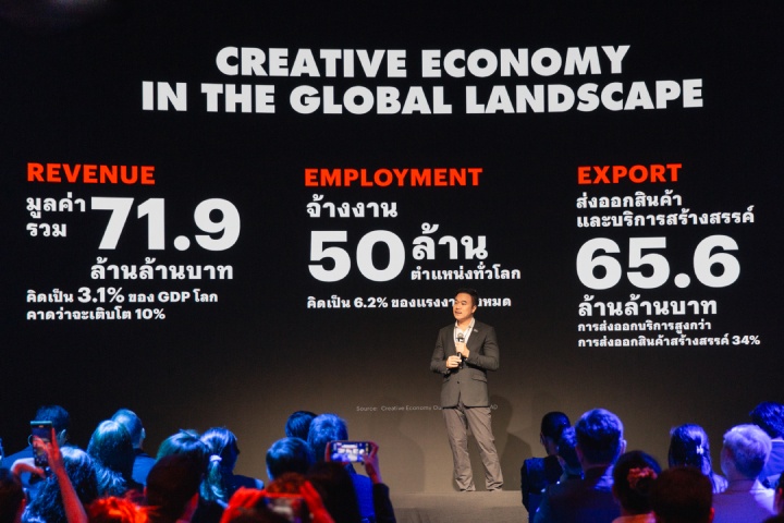 ดร.ชาคริต พิชญางกูร ผู้อำนวยการสำนักงานส่งเสริมเศรษฐกิจสร้างสรรค์ ให้ข้อมูลว่า เศรษฐกิจสร้างสรรค์มีบทบาทสำคัญต่อเศรษฐกิจโลก โดยสร้างรายได้รวมกว่า 71.9 ล้านล้านบาท คิดเป็น 3.1% ของ GDP โลก และมีแนวโน้มเติบโตเฉลี่ยประมาณ 10% ต่อปี พร้อมสร้างการจ้างงานกว่า 50 ล้านตำแหน่ง หรือ 6.2% ของแรงงานโลก โดยมีมูลค่าการส่งออกสินค้าและบริการสร้างสรรค์ทั่วโลกอยู่ที่ประมาณ 65.6 ล้านล้านบาท ซึ่งด้านบริการเติบโตสูงกว่าสินค้าถึง 34%