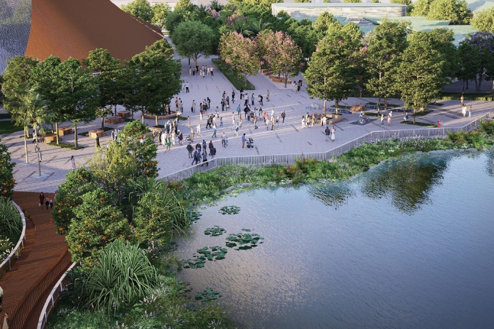 ผู้บริหารโครงการเปิดเผยอีกว่า ในด้านการออกแบบได้นำบริบทเดิมของพื้นที่ดังกล่าวมาใช้วางแผน เช่น การรักษาต้นปาล์ม และพันธุ์ไม้เดิมที่มีอยู่ในพื้นที่ให้มากที่สุดเพื่อให้ผู้คนสามารถเชื่อมโยงเรื่องราวกับธรรมชาติได้อย่างแท้จริง รวมถึงการใช้ประโยชน์ทะเลสาบ ที่เป็นขุมเหมืองเดิม โดยใช้เป็นพื้นที่รับน้ำ และปรับภูมิทัศน์ให้กลมกลืนกับการใช้ในแนวใหม่