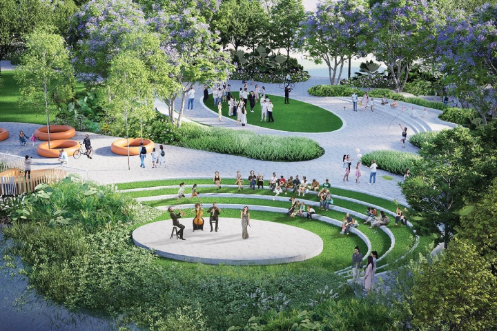 จันทร์ทิพย์ กล่าวถึง 3 หลักการสำคัญที่ใช้ขับเคลื่อนโครงการ ได้แก่ 1.Sustainable การใช้ชีวิตอย่างยั่งยืน และเคารพธรรมชาติ โดยจัดสรรพื้นที่สีเขียว และทะเลสาบมากกว่า 20% ของพื้นที่โครงการทั้งหมด 2.Walkable ทุกสิ่งอยู่ในระยะเดินถึงกันภายใน 15 นาที และ 3.Self-Sufficient สร้างชุมชนที่พึ่งพาตนเองได้ครบทุกมิติของการใช้ชีวิต